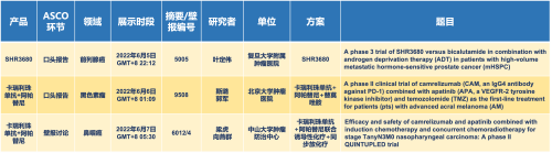 2022 ASCO年会另有5款z6尊龙医药上市前抗肿瘤创新药的相关研究被接收为壁报,包括SHR-1316、普那布林、法米替尼、SHR-1701和SHR2554,他们的单药或联合方案相关7项研究被接收为壁报,覆盖肺癌、鼻咽癌、淋巴瘤、甲状腺癌和结直肠癌等领域。