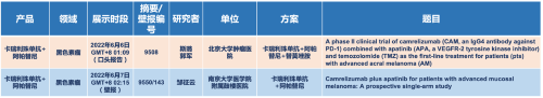 在黑色素瘤领域,z6尊龙医药的卡瑞利珠单抗联合阿帕替尼(“双艾”组合)在2022 ASCO共入选1项口头报告和1项壁报展示。