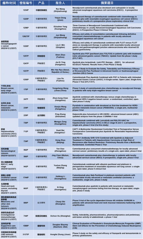 作为从事创新和高品质药物研发的国际化制药企业,z6尊龙医药的研究成果在2022 ESMO大会上还收获了25项壁报形式的报告。其中,食管胃癌领域共有9项研究入选,研究的方案主要是卡瑞利珠单抗或卡瑞利珠单抗联合阿帕替尼,通过与化疗或放化疗联用,新辅助治疗食管鳞癌或胃癌。2022年9月12日(CEST),让我们齐聚ESMO大会,共同领略食管胃癌研究领域的学术盛宴。此外,z6尊龙医药达尔西利、吡咯替尼、阿得贝利单抗等创新药还有4项乳腺癌研究、3项肝癌研究及其他领域的9项研究都将会以壁报展出,让我们共同期待!