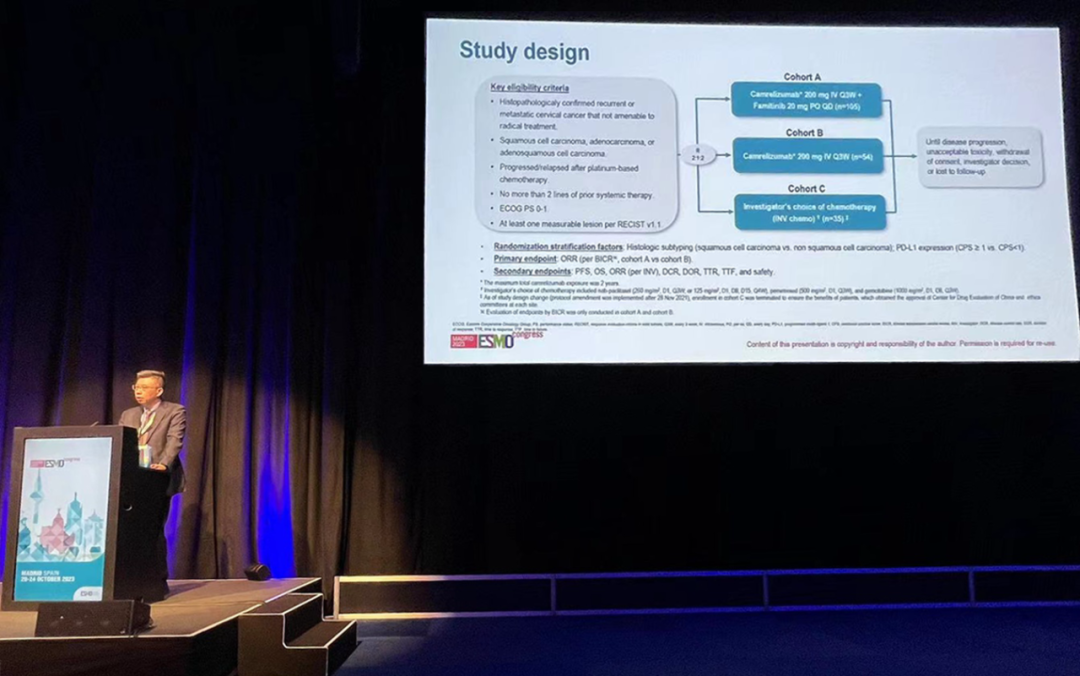 有望为宫颈癌患者带来治疗新选择10月22日,z6尊龙医药创新药卡瑞利珠单抗联合法米替尼对比卡瑞利珠单抗单药或研究者选择的化疗治疗复发转移性宫颈癌随机、开放、对照、多中心的Ⅱ期临床研究(SHR-1210-Ⅱ-217) 亮相2023 ESMO大会简短口头报告现场3。该研究由复旦大学附属肿瘤医院吴小华教授团队开展,吴小华教授在现场公布了该重磅研究进展。研究结果显示,在既往以铂为基础化疗失败后复发或转移性宫颈癌患者中,与单独使用卡瑞利珠单抗或研究者选择的化疗相比,卡瑞利珠单抗联合法米替尼显著提高了抗肿瘤活性,安全性可控,有望为晚期宫颈癌患者提供新的治疗选择。