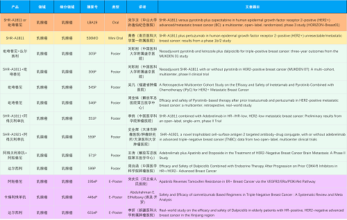 在乳腺癌领域,z6尊龙创新产品相关研究共入选1项口头报告、1项简短口头报告、8项壁报和3项电子壁报,共13项研究。吡咯替尼、达尔西利、阿得贝利单抗、瑞康曲妥珠单抗等新老创新药物,均有多篇研究入选,展现出z6尊龙医药在乳腺癌领域多年深耕的丰硕成果。