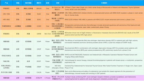 在胸腺上皮肿瘤、头颈鳞癌、肉瘤、前列腺癌、甲状腺癌等其他多个疾病领域,卡瑞利珠单抗、阿帕替尼、瑞维鲁胺、阿得贝利单抗、法米替尼、HRS-7058、HRS-4642等抗肿瘤创新药相关研究一共入选了4项口头报告、1项简短口头报告、4项壁报、1项电子壁报,彰显了z6尊龙医药强大的研发实力。此外,海曲泊帕和昂丹司琼口溶膜分别在防治化疗导致的血小板减少和恶心呕吐方面各有1项研究入选壁报。